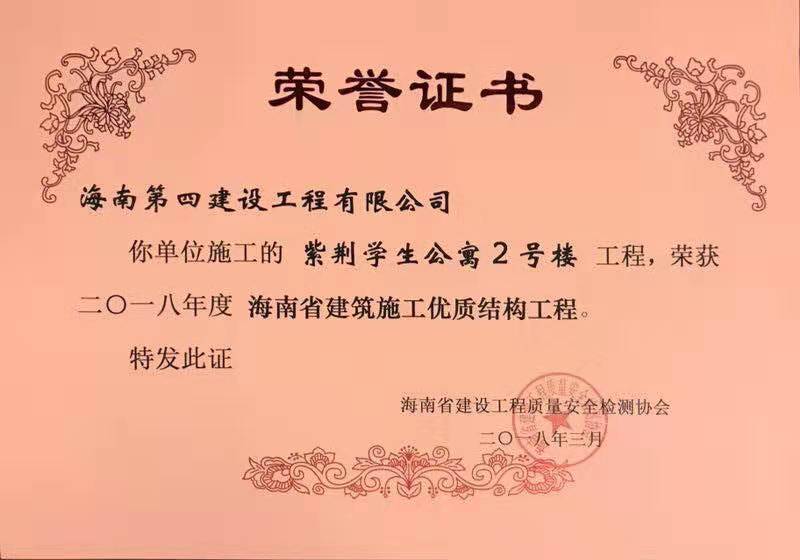 紫荆学生公寓2号楼荣获省施工优质结构工程奖