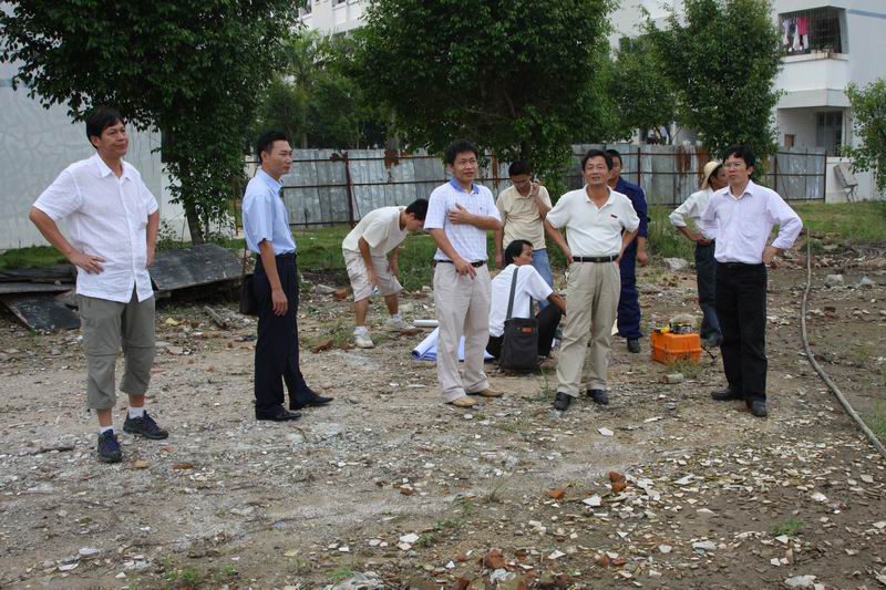 检查现场,李处长一行认真查看了施工围墙、三通一平、定位放线等工作的完成情况并对下一步工作进行了安排部署,做到争分夺秒,合理安排,以确保公寓楼项目的顺利进行。
