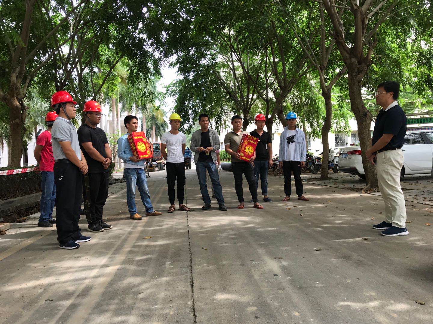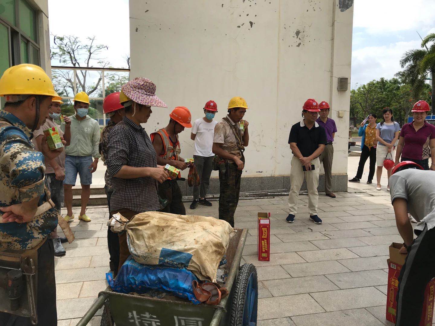 各项目工人纷纷对学校的慰问表示感谢,并打趣的说“一辈子终于上了一次大学,拍了一次毕业照”。