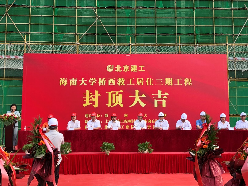 北京建工一建工程建设有限公司党委书记、董事长田文杰发表致辞,他强调,项目能够提前一个月完成封顶,得益于各单位的大力支持与积极配合,后续的施工工作,施工方将继续秉持“牢守质量安全底线”的精神,铆足干劲,顺利完成交付承诺。