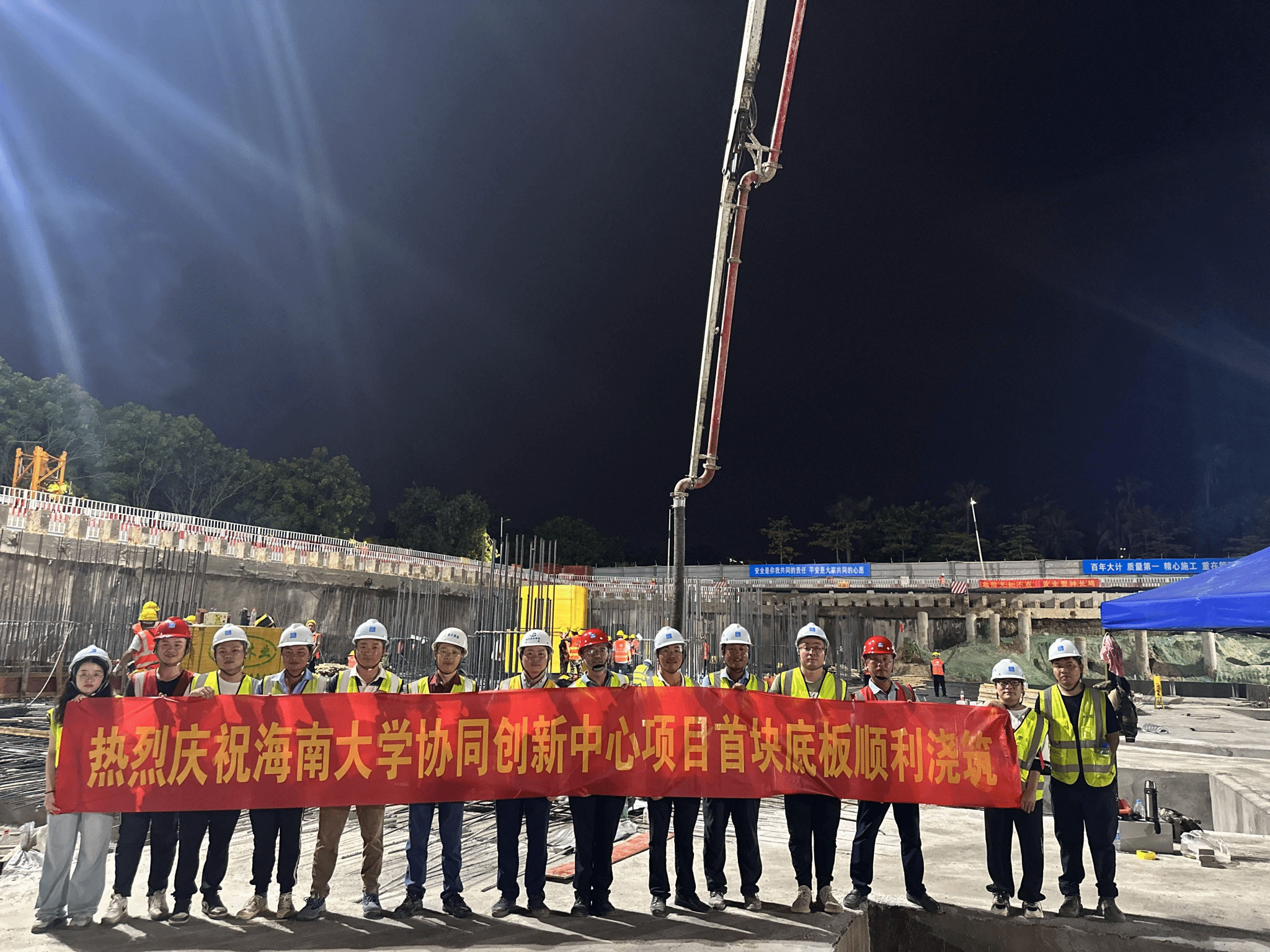 william威廉英国官网南海海洋资源利用国家重点实验室项目于2023年8月26日完成地下室结构混凝土浇筑工作,顺利冲出正负零,提前7天完成节点目标。在三季度项目管理过程中,基建处联合代管及参建单位迎难而上、提前谋划、积极协调各方专业技术力量及资源支援项目建设,严抓施工质量,精心规划项目施工安排,坚持以目标节点为导向,合理组织穿插施工、人员满铺,实现项目建设稳步推进,为项目后续主体结构封顶奠定了坚实的基础。