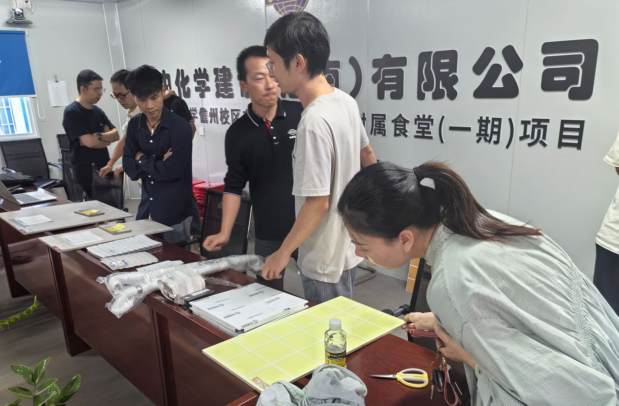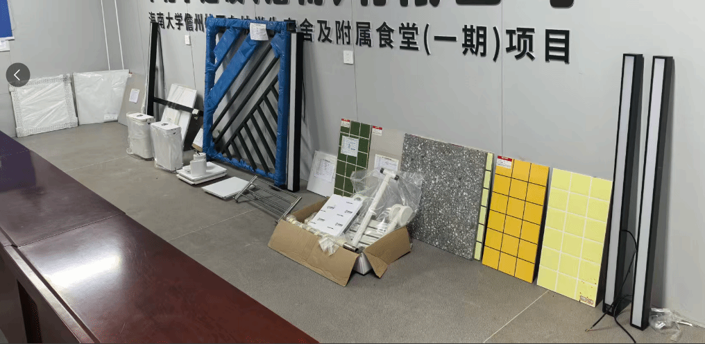 为进一步提升项目建设品质,充分践行“以师生为本”的建设理念,2025年11月12日下午3:00,基建处组织儋州校区管理委员会、檀雅书院和丹心书院的师生代表参加东坡学生宿舍及附属食堂(一期)项目一批灯具、栏杆、五金配件、卫浴洁具等装修材料现场认样。