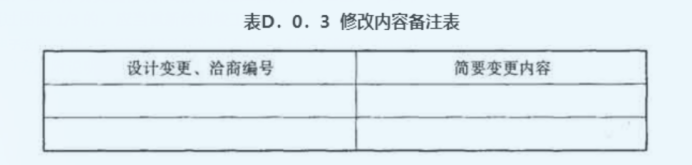将图纸变更结果直接改绘到电子版施工图中,用云线圈出修改部位,按表D.0.3的形式做修改内容备注表; (此项规定为有利于结算审核)